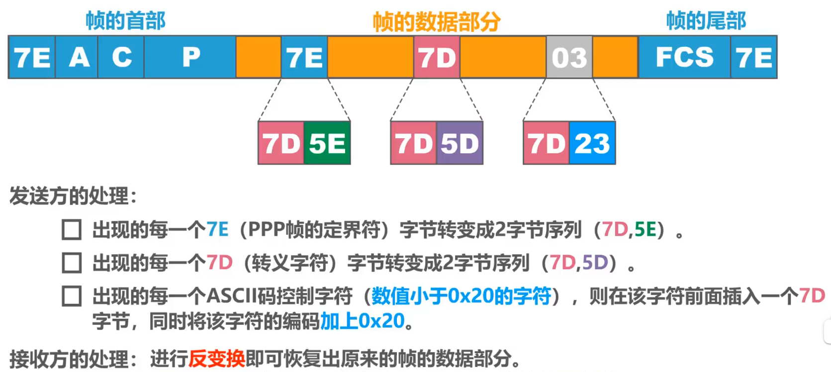 透明传输——面向字节的异步链路采用插入转义字符的字节填充法