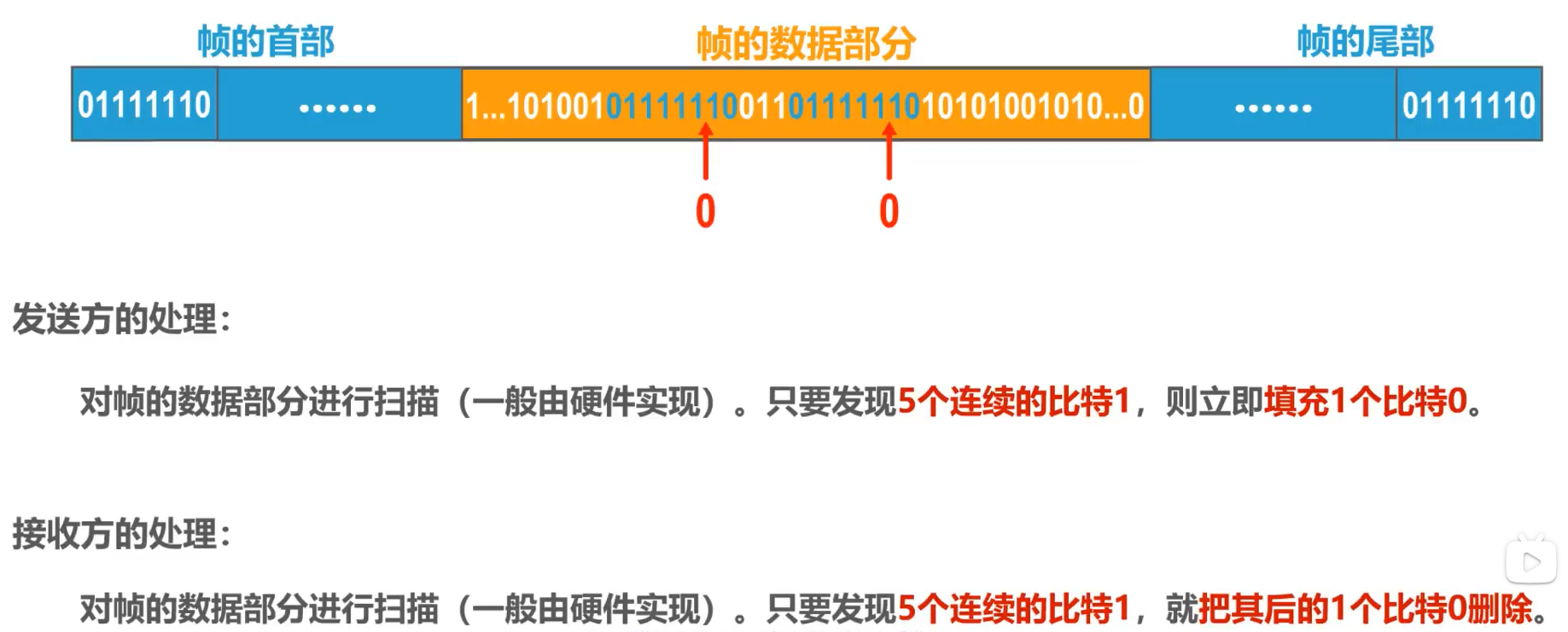 透明传输——面向比特的同步链路采用插入比特 0 的比特填充法