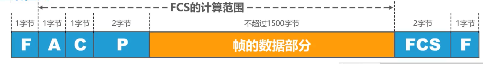 PPP 格式中的 FCS 字段是 CRC 计算出来的校验位,FCS 的计算范围包含了 A、C、P 以及帧的数据部分: